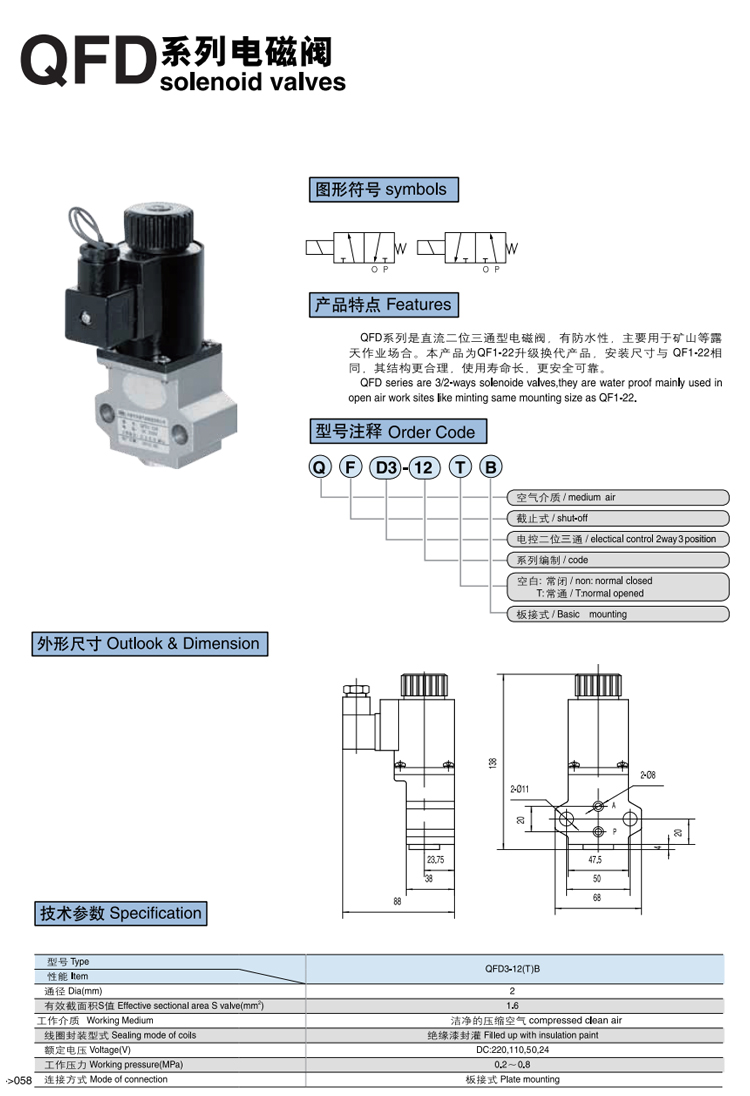電磁閥QFD3系列 QF1-22升級(jí)換代產(chǎn)品,可提供定制